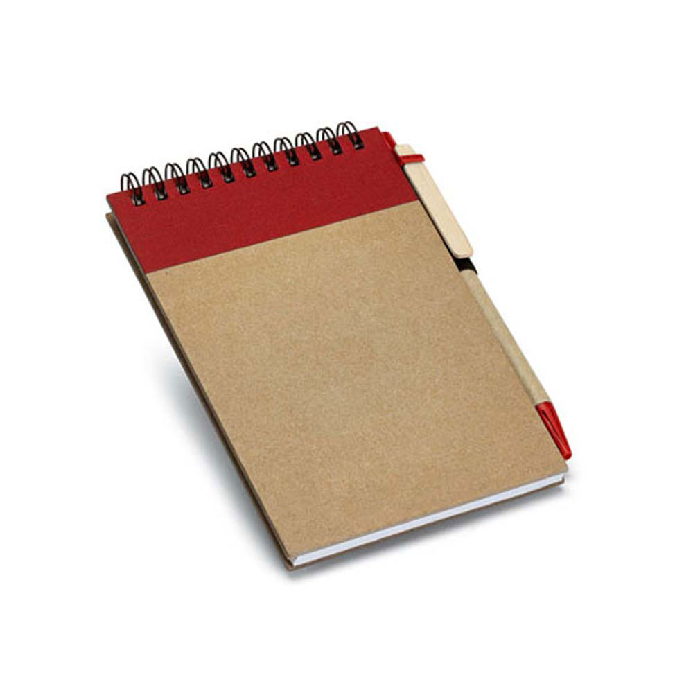 Agenda notes personalizata cu pix, format A6, confectionata din materiale reciclate. Coperta este confectionata din carton rigid si este prevazuta cu material colorat in zona spiralei de prindere. Prezinta suport elastic pentru pixul asortat iar la interior cuprinde un numar de 60 de pagini veline din hartie reciclata (60 g/m2). Culori: maro/rosu, maro/albastru, maro/verde. Dimensiuni: 10.5 x 14.5 cm. Va recomandam personalizarea prin timbru sec, serigrafie sau print UV. Costurile de personalizare se calculeaza separat in functie de specificatiile si detaliile tehnice ale proiectului care se doreste sa se realizeze. Comanda minima 100 buc.