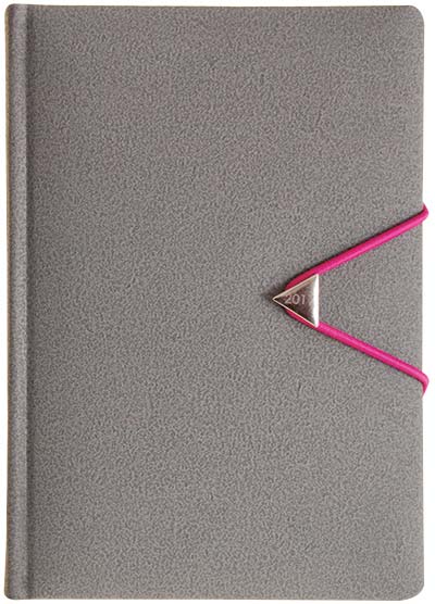 Agenda imprimata datata format A5 cu 384 de pagini offset de culoare alba. Agenda este printata la interior cu culoarea gri. Interiorul este organizat sub forma de calendar zilnic iar in partea de sus a fiecarei pagini sunt inscrise luna si ziua. Caledarul este sincronizat pentru anii 2016, 2017 si 2018. Informatiile cuprinse sunt traduse in cinci limbi: Engleza, Germana, Rusa, Italiana si Franceza. Sarbatorile internationale sunt semnalizate corespunzator datelor oficiale. Produsul cuprinde sectiuni pentru datele personale si pentru adrese/numere de telefon. Coperta este realizata din piele ecologica si are un aspect texturat foarte modern. Zona centrala a copertei prezinta un accesoriu metalic triunghiular cu rol de sistem de prindere pentru banda elastica fixata in lateral. Blocul de carte are colturile perforate. Se recomanda personalizare agenda prin timbru sec, folio, serigrafie, file de insert sau productie speciala. Costurile de personalizare se calculeaza separat in functie de detaliile/specificatiile clientului. Culoare: Gri. Dimensiuni: 143 x 203 mm. Comanda minima: 500 buc. Pretul nu contine TVA.