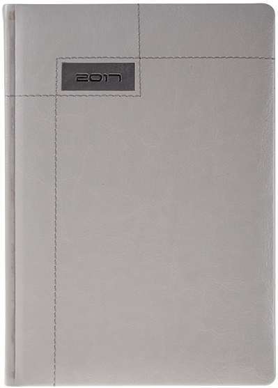 Agenda imprimata datata format A5 cu 384 de pagini offset de culoare alba. Agenda este printata la interior cu culoarea gri. Interiorul este organizat sub forma de calendar zilnic iar in partea de sus a fiecarei pagini sunt inscrise luna si ziua. Caledarul este sincronizat pentru anii 2016, 2017 si 2018. Informatiile cuprinse sunt traduse in cinci limbi: Engleza, Germana, Rusa, Italiana si Franceza. Sarbatorile internationale sunt semnalizate corespunzator datelor oficiale. Produsul cuprinde sectiuni pentru datele personale si pentru adrese/numere de telefon. Coperta este realizata din piele ecologica texturata si este prevazuta cu cusaturi decorative contrastante care incadreaza zona in care este marcat anul. In partea superioara a copertii exista o insertie de material contrastant pe care este inscriptionat anul calendaristic. Blocul de carte are colturile perforate. Pretul afisat include aplicarea timbrului sec cu anul calendaristic. Se recomanda personalizare agenda prin timbru sec, folio, serigrafie, file de insert sau productie speciala. Costurile de personalizare se calculeaza separat in functie de detaliile/specificatiile clientului. Culori: Alb, Bleumarin, Verde, Gri, Rosu. Dimensiuni: 143 x 203 mm. Comanda minima: 500 buc. Pretul nu contine TVA.