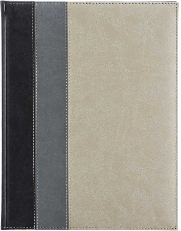 Agenda personalizata nedatata, bimaterial, format A5 cu 200 de pagini dictando de culoare alba (offset 70g/m2). Agenda este prevazuta cu spira metalica argintie si cuprinde: 192 de pagini imprimate in doua culori, rosu si gri, si 8 pagini de atlas policromie. Coperta este realizata din poliuretan, este buretata speciala, cusuta perimetal si stantata pentru carti de vizita. Colturile sunt rotunjite iar cele ale blocului sunt si perforate. Combinatia de culori care se va folosi la realizarea copertei se va stabili in functie de preferintele clientului. Se recomanda personalizarea copertii cu timbru sec iar la interior 2 – 4 pagini. Costurile de personalizare se calculeaza separat in functie de detaliile/specificatiile dorite de client. Culori: Verde inchis/Verde deschis, Crem/Gri. Dimensiuni: 14 x 22.5 cm. Comanda minima: 500 buc. Pretul nu contine TVA.