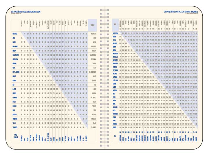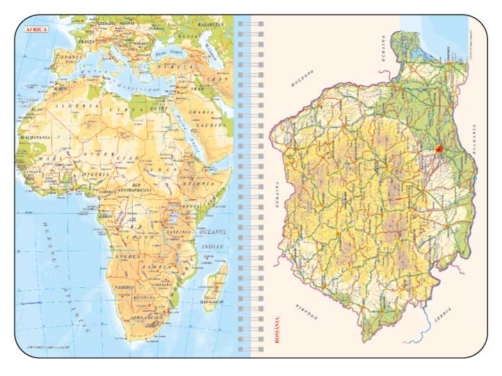 Agenda personalizata nedatata, bimaterial, format A5 cu 232 de pagini dictando de culoare ivoire (offset 70 g/m2). Agenda prezinta spira metalica argintie iar la interior cuprinde 224 pagini imprimate in doua culori, albastru si gri, si 8 pagini de atlas policromie. Coperta este realizata din poliuretan si este prevazuta cu un buzunar interior in aceeasi nuanta. Colturile copertii sunt rotunjite iar cele ale blocului sunt rotunjite si perforate. Combinatia de culori care se va folosi la realizarea copertei se va stabili in functie de preferintele clientului. Se recomanda personalizarea copertii cu timbru sec iar la interior 2 – 4 pagini. Costurile de personalizare se calculeaza separat in functie de detaliile/specificatiile dorite de client. Culori: Gri/Mov, Gri/Maro. Dimensiuni: 14 x 20.5 cm. Comanda minima: 500 buc. Pretul nu contine TVA.