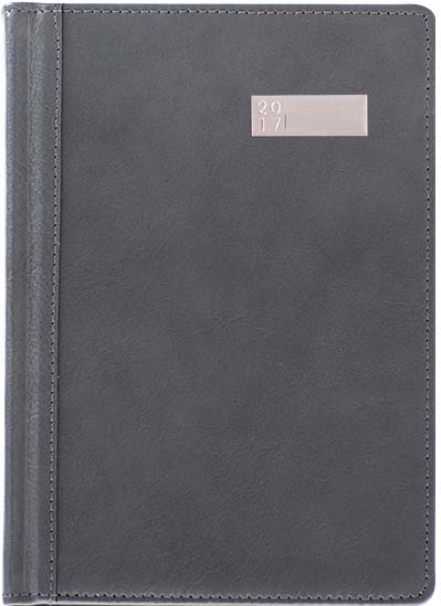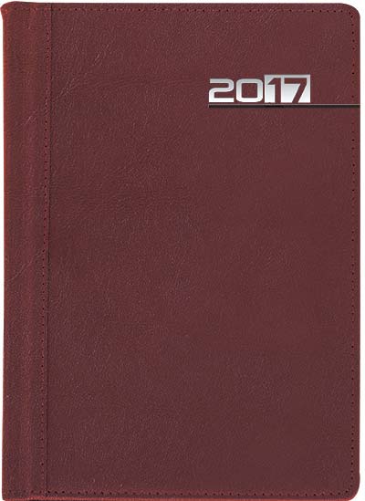 Agenda imprimata datata format A5 cu 384 de pagini offset de culoare alba. Agenda este printata la interior cu culoarea gri. Interiorul este organizat sub forma de calendar zilnic iar in partea de sus a fiecarei pagini sunt inscrise luna si ziua. Caledarul este sincronizat pentru anii 2016, 2017 si 2018. Informatiile cuprinse sunt traduse in cinci limbi: Engleza, Germana, Rusa, Italiana si Franceza. Sarbatorile internationale sunt semnalizate corespunzator datelor oficiale. Produsul cuprinde sectiuni pentru datele personale si pentru adrese/numere de telefon. Blocul de carte are colturile perforate. Coperta este este cusuta si este realizata din piele naturala cu aspect lucios. Materialul este placut la atingere si foarte elegant. Anul calendaristic este marcat cu caractere metalice in partea dreapta-sus a copertii. Se recomanda personalizarea agendei cu timbru sec, folio sau personalizare nominala. Costurile pentru personalizare se calculeaza separat in functie de detaliile/specificatiile clientului. Culori: Negru, Rosu, Gri, Bleumarin, Verde, Maro, Grena. Dimensiuni: 143 x 203 mm. Comanda minima: 500 buc. Pretul nu contine TVA.