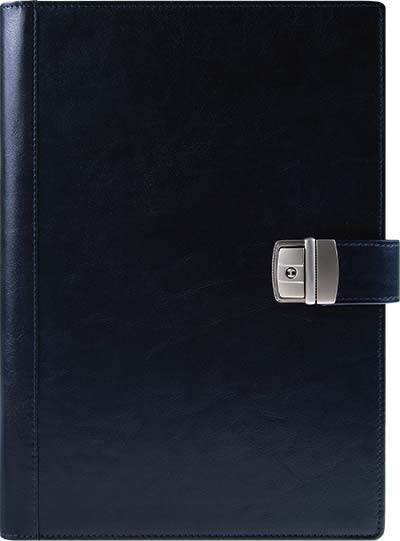 Agenda imprimata saptamanala format B5 cu 160 de pagini offset de culoare alba. Agenda este printata la interior cu culoarea gri. Interiorul cuprinde calendar saptamanal, calendar pentru planificarea lunara si pagini dictando. Blocul de carte este detasabil si se poate inlocui. Coperta este realizata din piele naturala. Materialul este placut la atingere si foarte elegant. Sistemul de inchidere cu clema metalica aduce un plus de eleganta produsului. Se recomanda personalizarea agendei cu timbru sec, folio sau personalizare nominala. Costurile pentru personalizare se calculeaza separat in functie de detaliile/specificatiile clientului. Culori: Bleumarin. Dimensiuni: 167 x 240 mm. Comanda minima: 500 buc. Pretul nu contine TVA.