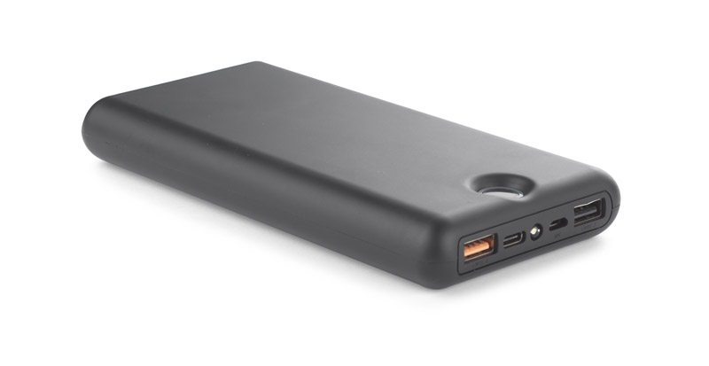 Baterie externa de 20.000 mAh cu functie quick charge. Dimensiuni 83 x 168 x 22 mm. Culori disponibile: negru. Pretul afisat nu include costurile de personalizare. Acestea se calculeaza la cerere in functie de specificatiile proiectului dvs. Comanda minima: 50 buc. Pretul nu include TVA