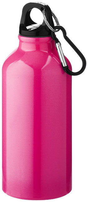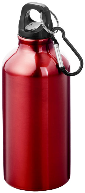 Sticla metalica personalizata pentru apa prevazuta cu carabina. Capacul sticlei se deschide prin rasucire iar carabina cu care este prevazuta nu poate fi utilizata la activitati de catarare. Produsul este confectionat din aluminiu si are o capacitate de 350 ml. Culori: verde, argintiu, bleumarin, albastru, rosu, verde neon, roz, bleu. Dimensiuni: diametru 6.5 x 17.5 cm. Va recomandam personalizarea prin tampografie. Costurile serviciului de personalizare se calculeaza separat in functie de specificatiile transmise de catre client. Comanda minima 50 buc. Pretul nu contine TVA.