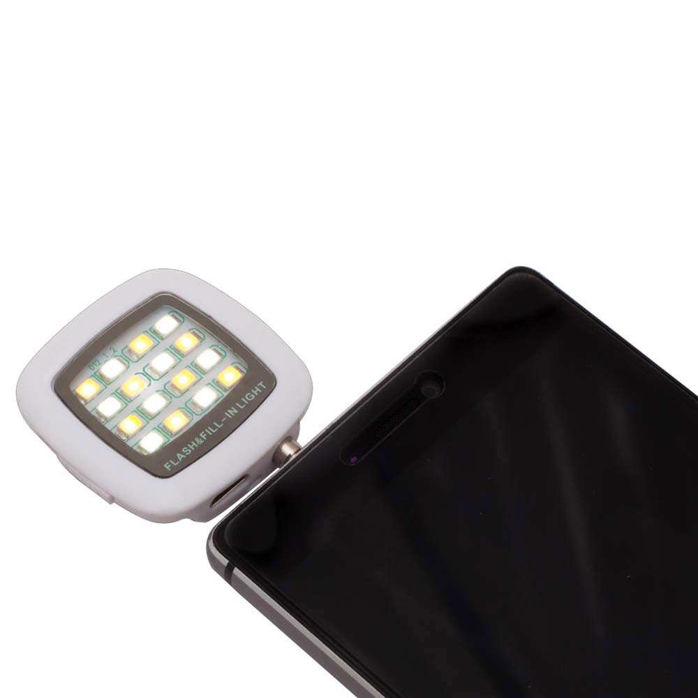 Blit portabil prevazut cu 16 LED-uri pentru reglarea luminozitatii necesare pentru fotografiile perfecte. Este potrivit pentru utilizarea impreuna cu un selfie stick. Ofera o lumina uniforma si completa potrivita pentru fotografii sau filmari realizate la o distanta de 2-3 metri. Se conecteaza cu jack de 3.5 mm si are o capacitate de 200 mAh. Produs confectionat din plastic. Dimensiuni: 3.9 x 5.5 x 0.9 cm. Va recomandam personalizarea prin serigrafie sau gravura. Costurile de personalizare se calculeaza separat in functie de specificatiile si detaliile tehnice ale proiectului care se doreste sa se realizeze. Comanda minima 50 buc.