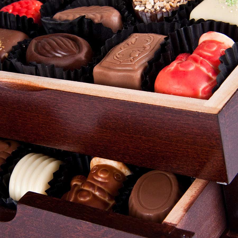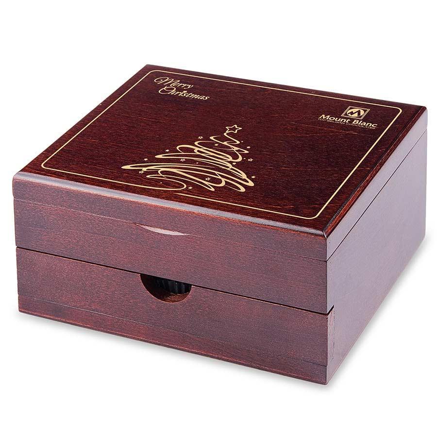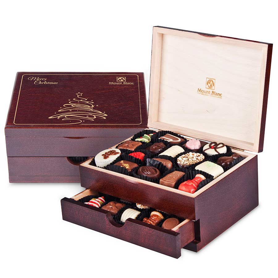 Ciocolata belgiana personalizata reprezinta un cadou potrivit si deosebit pentru orice ocazie. Aceasta cutie de praline belgiene din colectia de lux va suprinde orice destinatar. Cutia confectionata din lemn este prevazuta cu doua compartimente de depozitare special create pentru selectia de 29 de praline continuta. Partea superioara a acestei cutii deosebite este imbogatita cu elemente decorative gravate care pot fi modificate si adaptate nevoilor dvs de personalizare. Este un cadou deosebit care emana eleganta, apreciere si rafinament. Pralinele respecta standardul de rafinament al ciocolatei belgiene iar diversitatea umpluturilor si a formelor va va surprinde placut. Este un produs de lux potrivit pentru utilizarea in timpul sarbatorilor de iarna pentru cadourile pe care le pregatesti pentru colaboratorii sau partenerii tai de afaceri. Greutate: 440g. Dimensiuni: 18x14x9 cm. Recomandarea noastra de personalizare pentru acest produs este prin: gravura laser, compliment card sau banda personalizata din satin. Pretul afisat nu include costurile serviciilor de personalizare. Acestea se calculeaza separat in functie de specificatiile proiectului dvs. Comanda minima: 50 buc.