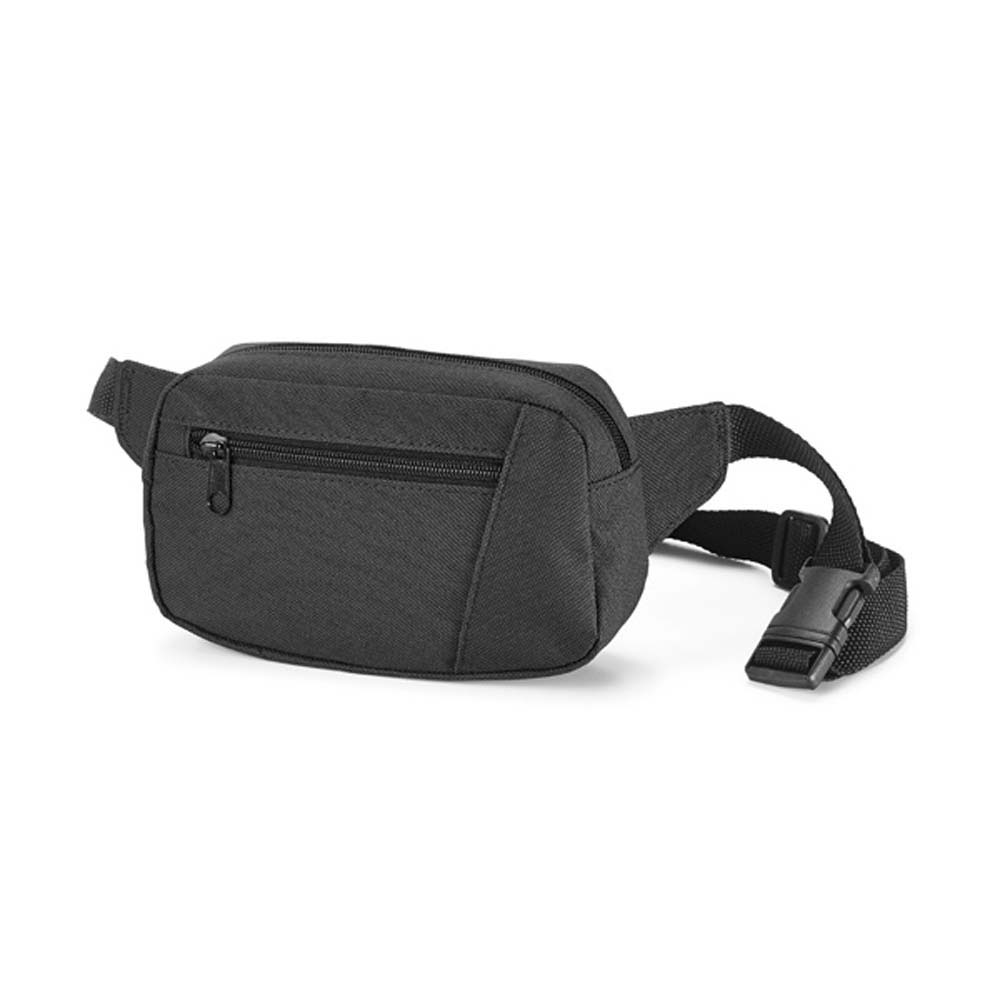 Borseta personalizata pentru talie prevazuta cu curea reglabila si inchidere cu catarama din plastic. Este compusa dintr-un compartiment principal si un buzunar frontal, ambele cu inchidere cu fermoar. Produs confectionat din poliester 600D. Culori: albastru, negru. Dimensiuni: 21 x 21 x 5 cm. Va recomandam personalizarea prin serigrafie directa sau transferata. Costurile de personalizare se calculeaza separat in functie de specificatiile si detaliile tehnice ale proiectului care se doreste sa se realizeze. Comanda minima 50 buc.