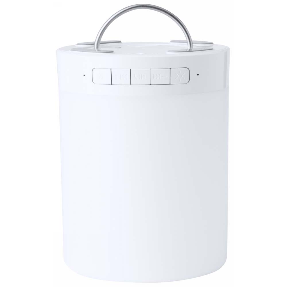 Boxa portabila personalizata cu conectare prin bluetooth si putere de 3W. La interior este prevazuta cu becuri LED iar culoarea si intensitatea acestora se schimba prin simpla atingere a boxei. Este un produs modern prevazut cu maner metalic utilizabil atat pentru transport cat si pentru agatarea boxei. Se incarca cu ajutorul unui cablu USB si este prevazuta cu slor pentru carduri micro SD. Aceasta boxa portabila va permite sa ascultati muzica preferata oriunde. Este un produs modern de dimensiuni reduse care va poate asigura ambientul muzical din timpul petrecerilor in aer liber, la picnicuri, in calatorii sau drumetii. Prezinta butoane pentru reglare si se livreaza cu cablu USB si cablu audio. Produs confectionat din ABS. Dimensiuni: diametru 9.8 x 12.6 cm. Va recomandam personalizarea prin serigrafie. Costurile de personalizare se calculeaza separat in functie de siglele sau textele solicitate. Comanda minima 50 buc.