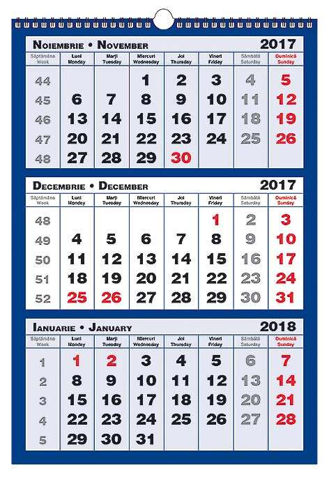 CALENDAR TRIPTIC PERSONALIZAT DE PERETE 3 CULORI