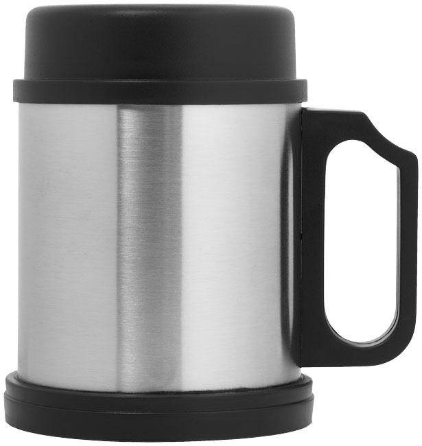 Cana personalizata termoizolanta confectionata din otel inoxidabil si prevazuta cu capac. Baza produsului este prevazuta cu un suport din plastic de culoare neagra. Manerul si capacul sunt confectionate din plastic. Capacitatea produsului este de 290 ml. Dimensiuni: diametru 8.6 x 11.3 x 12.5 cm. Va recomandam personalizarea prin tampografie. Costurile serviciului de personalizare se calculeaza separat in functie de specificatiile transmise de catre client. Comanda minima 50 buc. Pretul nu contine TVA.