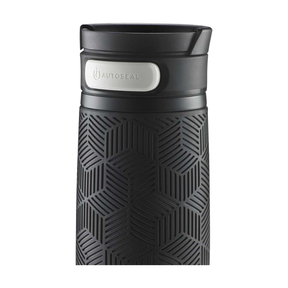 Cana termos personalizata cu sistem de autosigilare si capacitate de 470ml. Este un produs premium cu pereti dubli confectionati din otel inoxidabil . La exterior este acoperita cu un material rezistent la uzura si zgarieturi. Zona de prindere este cauciucata si este prevazuta cu un model geometric. Acest produs se sigileaza perfect si nu trebuie sa va faceti griji cu privire la scurgerile de lichid nedorite. Tehnologia Autoseal cu care este prevazuta aceasta cana termos personalizata prespune ca de fiecare data dupa consum orificiul se inchide automat. Consumul lichidului se realizeaza prin apasarea butonului frontal cu care este prevazuta cana. Datorita peretilor dubli aceasta cana termos personalizata are capacitatea de a mentine temperatura lichidelor calde pana la 5 ore si pe cea a celor reci pana la 12 ore. Se curata foarte usor iar capacul poate fi curatat in masina de spalat vase. Este un produs foarte util in calatorii lungi sau drumetii. Are un design elegant si modern si este o alegere potrivita pentru cadouri personalizate sau cadouri corporate personalizate. Se livreaza cu instructiuni de utilizare. Culori: negru, argintiu/albastru. Dimensiuni: diametru 7.5 x 21.5 cm. Va recomandam personalizare cana termos prin tampografie sau gravare laser. Costurile de personalizare se calculeaza separat in functie de detaliile tehnice ale proiectului dvs. Comanda minima 50 buc.