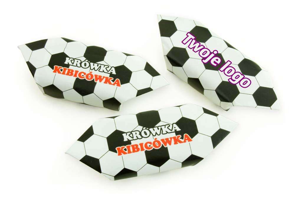 Caramele personalizate ambalate manual in hartie cu imprimeu specific mingiilor de fotbal. Etichetele personalizate pot contine si logo-ul clientului sau inscriptii in culorile echipei favorite. Caramelele sunt moi si delicioase si au aroma de lapte. Acesta este un produs iubit de majoritatea persoanelor si va fi un produs promotional cu care nu vei da gres la evenimente tematice, cadouri personalizate, cadouri corporate sau in campaniile de marketing ale companiei tale. 1 kg contine aproximativ 85 de buc. Dimensiuni bomboana: 3.5 x 2.1 x 1.2 cm. Dimensiuni eticheta: 6.8 x 7.3 cm. Termen de valabilitate: 4 luni. Pretul include personalizarea produsului prin imprimare digitala. Comanda minima: 50 kg.