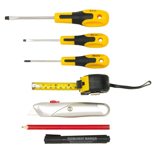 Centura reglabila pentru talie cu scule. Include: 3 surubelnite difrite, ruleta de 3 m, cutter, creion tamplar si marker negru. Setul este confectiona din metal, plastic si poliester. Dimensiuni: 25 x 30 x 7 cm. Va recomandam personalizarea prin tampografie sau termotransfer. Costurile de personalizare se calculeaza separat in functie de cerintele clientului. Comanda minima 50 buc. Pretul nu contine TVA.