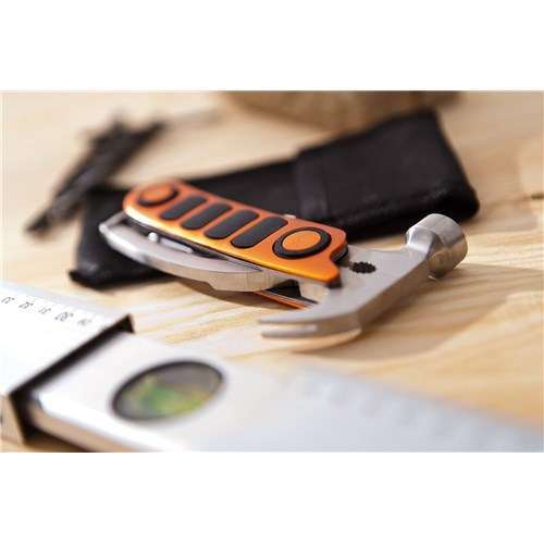 Ciocan multifunctional (6 functii) cu manere metalice partial acoperite cu o membrana de cauciuc. Se livreaza ambalat intr-o punga din nailon. Confectionat din otel inoxidabil si aluminiu. Dimensiuni: 13,5 x 7,5 x 1,7 cm. Va recomandam personalizarea prin gravura laser, tampografie sau termotransfer. Costurile de personalizare se calculeaza separat in functie de cerintele clientului. Comanda minima 50 buc. Pretul nu contine TVA.