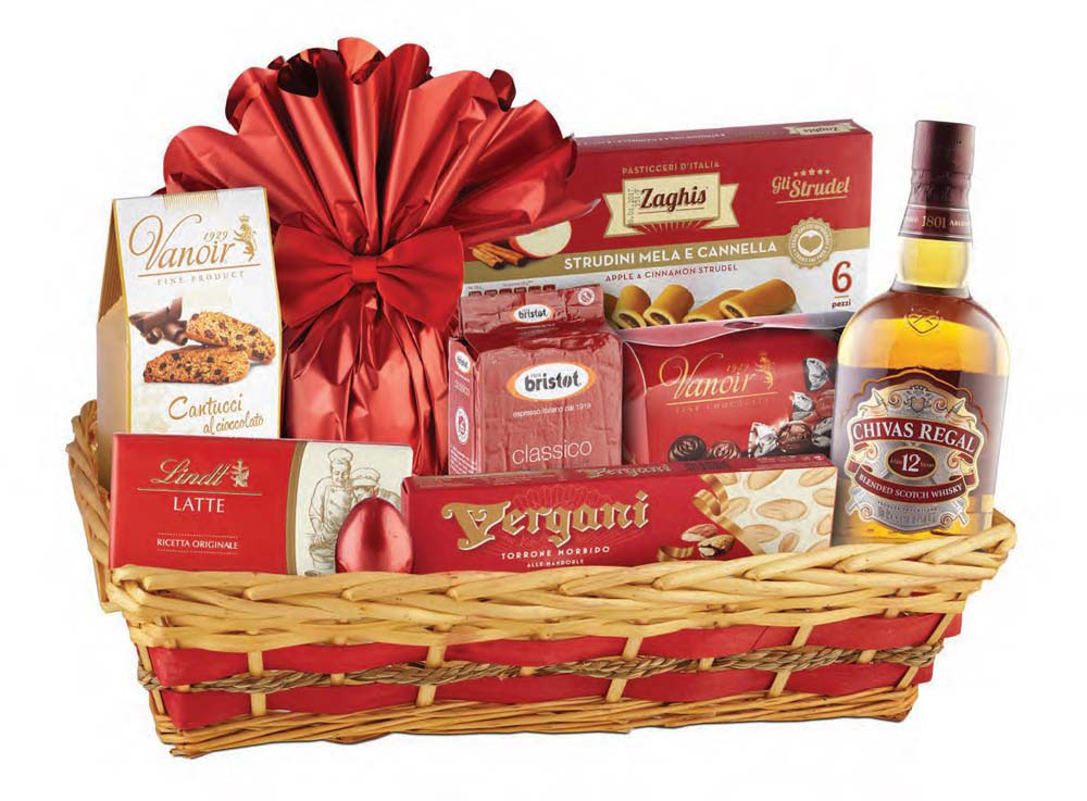 Cos cadou in editie speciala pentru sarbatorile de Paste. Este un produs elegant ambalat de sarbatoare la interiorul unui cos de rachita prevazut cu manere din bambus. Cosul contine: sticla Whisky Chivas (50 cl), Panettone Elegance cu stafide si coaja de portocala (500 g), tableta de ciocolata cu lapte Lindt (100 g), biscuiti Cantucci cu ciocolata Vergani (100 g), cufar cu praline de ciocolata cu crema de cafea, alune si cereale, Vanoir (150 g), cafea Bristot Clasico (250 g), fursecuri cu fructe asortate strudini zaghis (120 g), specialitate Torrone Morbido (75 g), lumanare decorativa in forma de ou. Produsele sunt atent ambalate, sunt asortate cromatic iar impreuna reprezinta un cadou complet care va fi cu siguranta apreciat. Recomandarea noastra de personalizare pentru acest produs este prin compliment card sau banda din satin personalizata. Costurile de personalizare se calculeaza separat in functie de specificatiile clientului. Comanda minima: 50 buc.