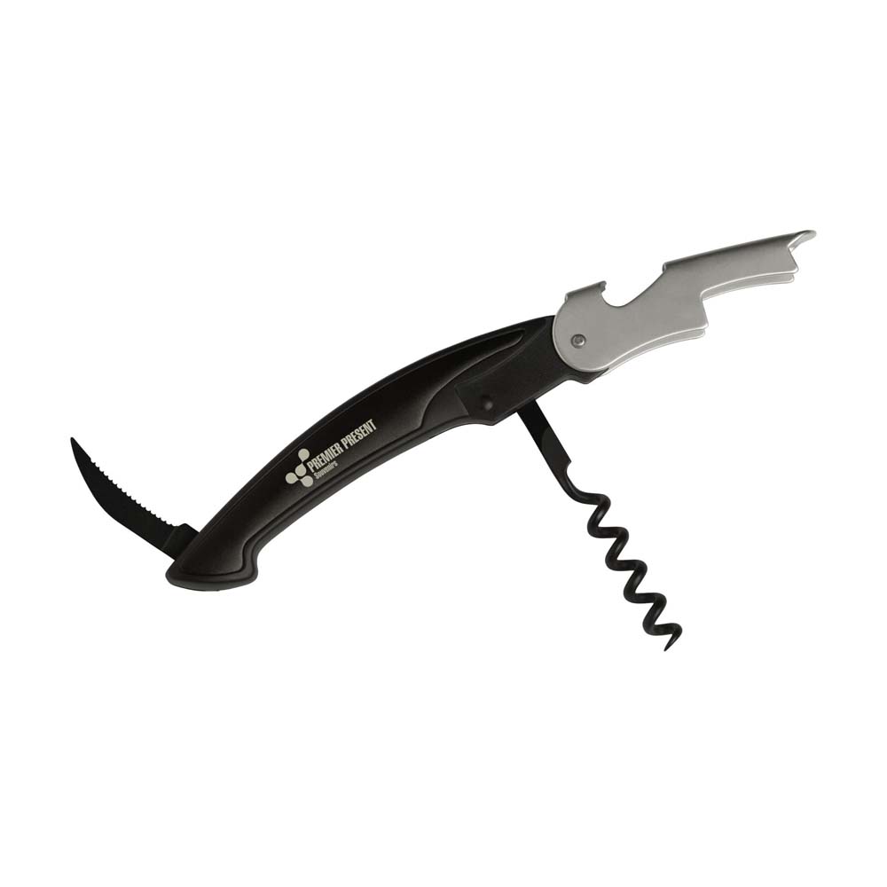 Desfacator sticle personalizat prevazut cu tirbuson si cutit pentru desigilarea sticlelor. Este un produs modern cu maner colorat confectionat din aluminiu. Are design pliabil si este confectionat din otel inoxidabil. Este un produs foarte utilizat in restaurante, baruri si terase. Acest desfacator sticle personalizat poate reprezenta un obiect personalizat deosebit pentru restaurantul tau. Se livreaza ambalat in cutie. Culori: albastru, rosu, negru. Dimensiuni: 12.3 x 3.2 x 1.5 cm. Va recomandam personalizare desfacator sticle prin gravare laser. Costurile de personalizare se calculeaza separat in functie de detaliile tehnice ale proiectului dvs. Comanda minima 50 buc.