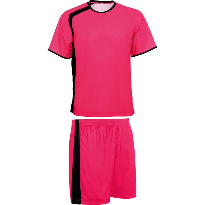 Set sport pentru copii realizat din material combinat. Ambele piese au partea laterala realizata in contrast de culoare fata de nuanta de baza. Tricou imprimat cu maneci de tip raglan. Material din fibra respirabila, placut la atingere si care se usuca usor. Confectionat 100% din poliester (140 g/m2). Eticheta produsului este detasabila. Se recomanda imprimarea tricoului prin serigrafie transferata sau broderie. Costurile de personalizare se calculeaza separat, in functie de detaliile de personalizare dorite.Culori disponibile: Alb/Turcoaz, Galben/Albastru, Albastru/Alb, Fucsia/Negru. Marimi disponibile: 4, 8, 12, 16. Comanda minima 50 buc. Pretul nu contine TVA.