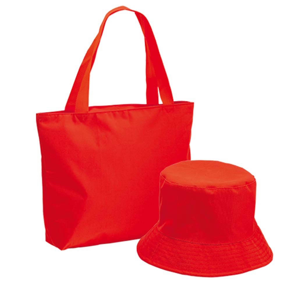 Geanta pentru plaja personalizata cu palarie asortata pentru protectia solara. Produs confectionat din poliester 600D. Dimensiuni: 42 x 31 x 8 cm. Personalizarea acestui produs se poate realiza prin serigrafie directa sau transferata. Costurile serviciului de personalizare se calculeaza separat in functie de detaliile tehnice ale proiectului dvs. Comanda minima 50 buc.