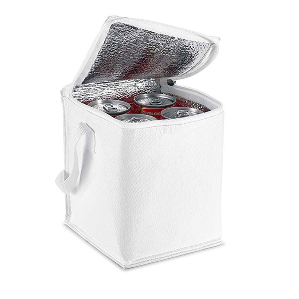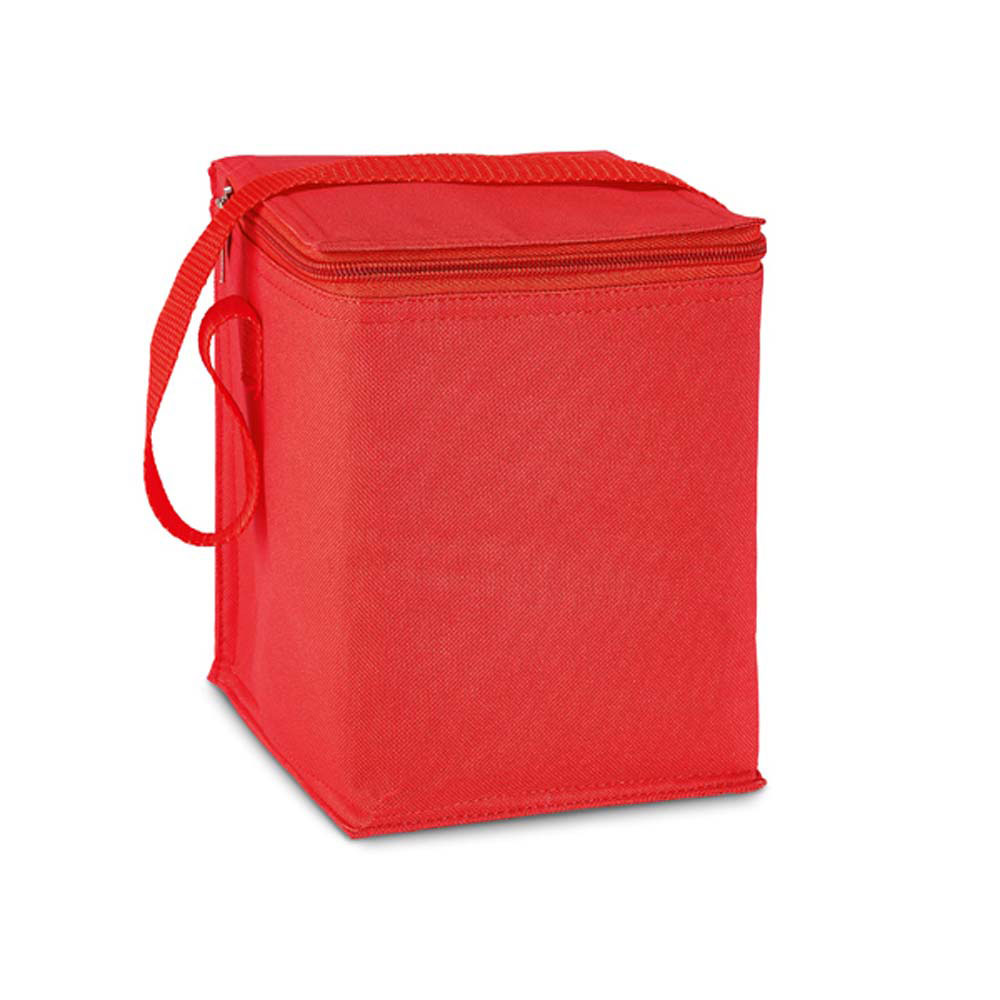 Geanta frigorifica personalizata de mici dimensiuni potrivita pentru pastrarea la rece a 4 doze de 0.5 l. Se inchide cu fermoar si este prevazuta cu un maner care permite transpotul pe umar. Produs confectionat din poliester 600D. Culori: verde, portocaliu, alb, rosu, bleumarin. Dimensiuni: 15 x 19 x 15 cm. Va recomandam personalizarea prin serigrafie directa sau transferata. Costurile de personalizare se calculeaza separat in functie de specificatiile si detaliile tehnice ale proiectului care se doreste sa se realizeze. Comanda minima 50 buc.