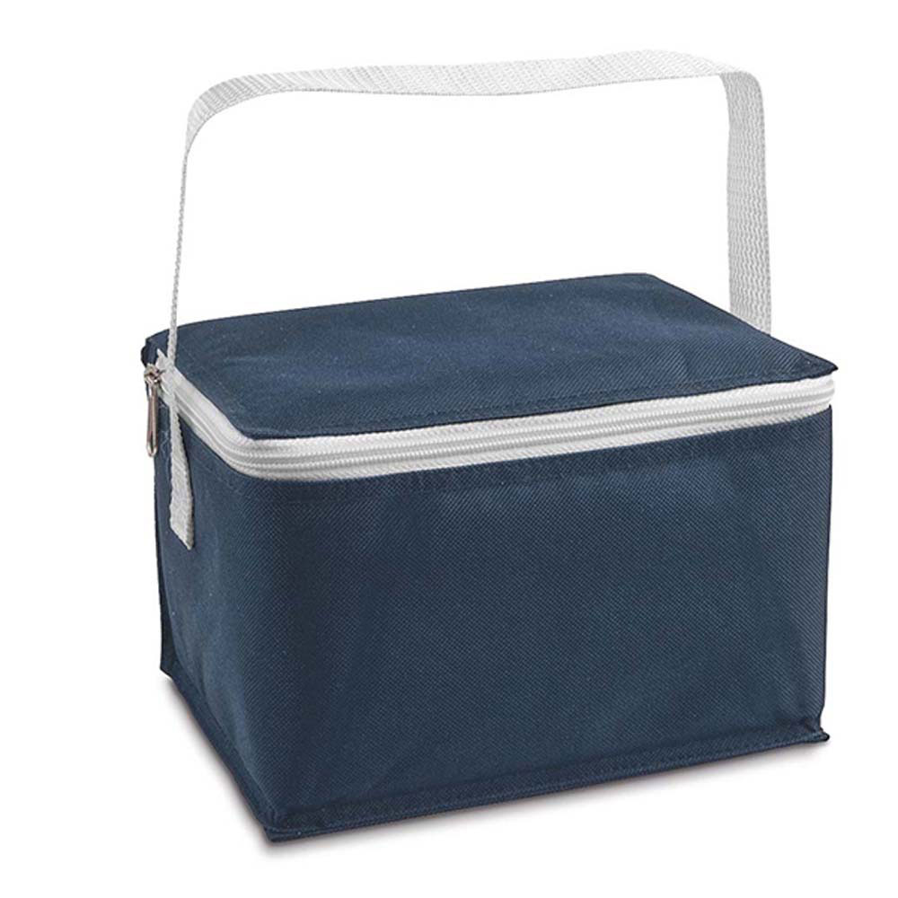Geanta frigorifica personalizata de mici dimensiuni potrivita pentru pastrarea la rece a 6 doze de 0.33 l. Se inchide cu fermoar si este prevazuta cu un maner care permite transpotul pe umar. Produs confectionat din poliester 600D. Culori: verde, portocaliu, galben, alb, rosu, bleumarin. Dimensiuni: 19.5 x 14 x 12.5 cm. Va recomandam personalizarea prin serigrafie directa sau transferata. Costurile de personalizare se calculeaza separat in functie de specificatiile si detaliile tehnice ale proiectului care se doreste sa se realizeze. Comanda minima 50 buc.