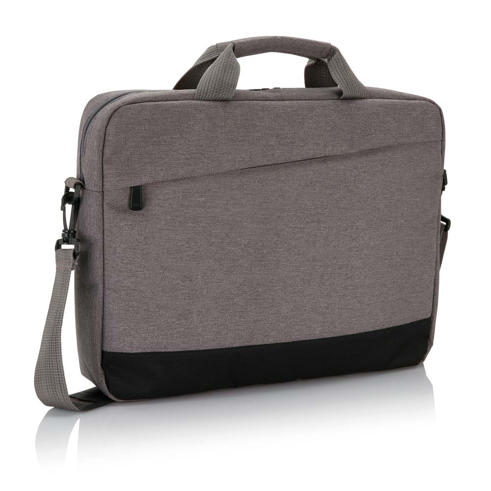 Geanta laptop personalizata cu design elegant in doua nuante de culoare. Compartimentul principal este captusit si permite transportul unui laptop cu diagonala de pana la 15.6 inch. Este prevazuta cu un buzunar frontal cu fermoar pentru depozitarea altor obiecte personale necesare. Prezinta manere cu protectie si curea de umar reglabila si detasabila. Cureaua este prevazuta cu o banda de protectie pentru umar. Acest produs este potrivit pentru activitatea de birou si veti fi siguri ca laptopul dvs. este protejat si transportat in conditii corespunzatoare. Geanta de laptop personalizata se poate transforma intr-un cadou corporate personalizat foarte apreciat sau poate fi integrata in campania de promovare a companiei tale. Este confectionata din poliester 600D. Culori: gri/negru, albastru/negru. Dimensiuni: 8 x 30 x 39 cm. Pentru personalizare geanta laptop va recomandam serigrafia. Costurile de personalizare se calculeaza separat in functie de siglele/textele dorite. Comanda minima 50 buc.