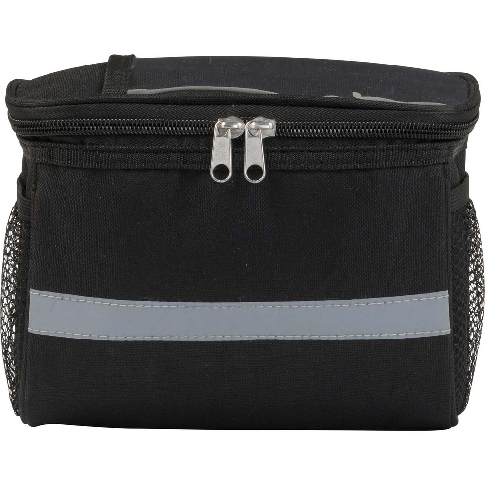 Geanta termoizolanta personalizata pentru fixarea pe bicicleta. Este un produs util in timpul calatoriilor cu bicicleta oferindu-va posibilitatea de a va depozita in siguranta o gustare sau bauturile de care aveti nevoie in timpul plimbarii. Pe partea frontala este prevazuta cu o banda reflectorizanta utila pe timp de noapte. Inchiderea se realizeaza cu fermoar iar in partea superioara este prevazuta cu un buzunar transparent potrivit pentru depozitarea unei harti sau a telefonului mobil. In cazul in care alegi sa depozitezi telefonul in buzunarul transparent vei putea oricand sa accesezi ecranul acestuia fara a fi nevoit sa il scoti din buzunar. Pe partile laterale prezinta buzunare din plasa. Prin personalizare se transforma intr-un obiect promotional foarte util care poate fi utilizat la competitiile de ciclism sau in cadrul altor evenimente de profil. Produs confectionat din poliester 600D, PEVA si PVC. Dimensiuni: 21.5 x 12 x 15 cm. Va recomandam personalizarea prin serigrafie. Costurile de personalizare se calculeaza separat in functie de specificatiile proiectului dvs. Comanda minima 50 buc.