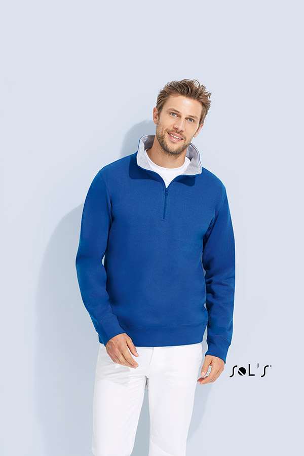 Hanorac personalizat pentru barbati realizat din fleece pieptanat. Model fara gluga, cu guler care se inchide cu fermoar. La interior, gulerul este realizat din material in nuanta contrastanta si este prevazut cu banda de intarire. Mansetele si marginea inferioara sunt realizate din material raiat cu adaos de elastan. Croiala cu cusaturi laterale. Confectionat dintr-un amestec de 50% bumbac si 50% poliester, Fleece (280 g/m2). PEntru personalizare recomandam serigrafia transferata sau broderia. Costurile sunt calculate separat in functie de specificatiile clientului.Culori disponibile: Negru, Bleumarin, Albastru, Maro. Marimi disponibile: S, M, L, XL, XXL. Comanda minima 50 buc. Pretul nu contine TVA.