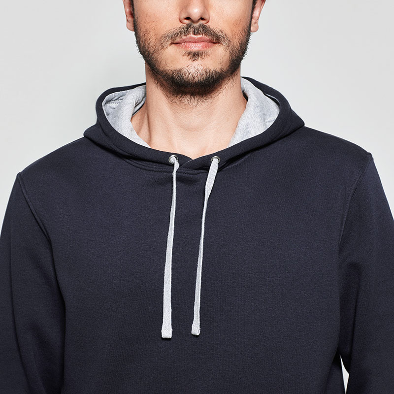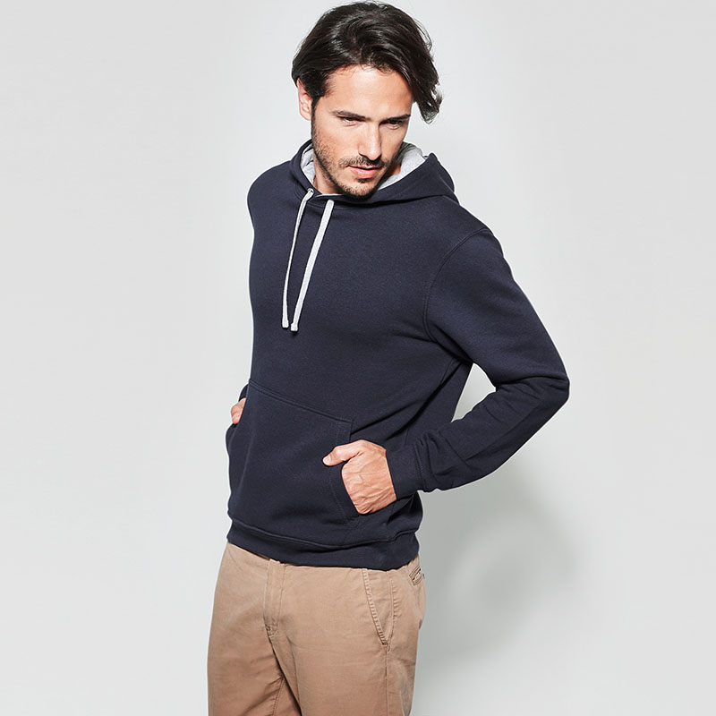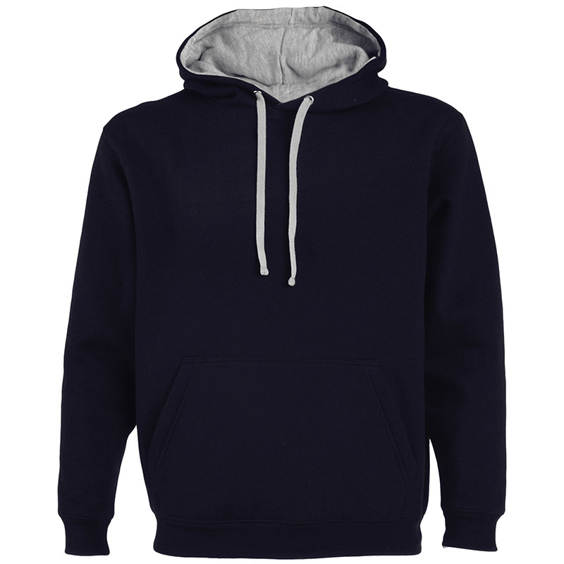 Hanorac personalizat barbatesc smart casual. Model cu gluga in doua culori: interior din material dublu in culoare contrastanta asortata cu snurul pentru reglare. Prevazut cu un buzunar frontal de tip marsupiu. Marginea de jos si mansetele sunt confectionate din material raiat 1×1 cu adaos de elastan. In zona gulerului si a buzunarului prezinta banda de intarire pentru mascarea cusaturii. Confectionat din 65% poliester si 35% bumbac, vatuit pe interior (280 g/m2). Eticheta detasabila. PEntru personalizare recomandam serigrafia transferata sau broderia. Costurile sunt calculate separat in functie de specificatiile clientului.Culori disponibile: Alb/Bleumarin, Negru/Gri, Albastru/Alb, Bleu/Alb, Verde/Alb, Roz/Gri, Bleumarin/Gri, Gri/Negru, Rosu/Negru, Verde inchis/Gri. Marimi disponibile: S, M, L, XL, XXL. Comanda minima 50 buc. Pretul nu contine TVA.