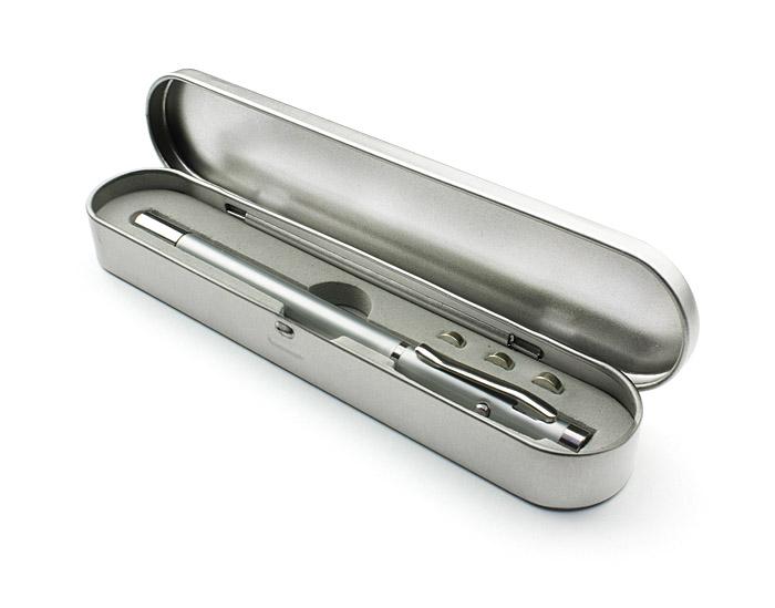 Indicator laser personalizat prevazut cu pix, design telescopic. Produsul este metalic si se livreaza intr-un penar metalic asortat. Se livreaza cu baterii incluse in pret iar pasta pixului este de culoare albastra. Dimensiuni: 147 x 9 mm. Lungime totala 552 mm. Dimensiuni cuie: 177 x 38 x 19 mm. Va recomandam personalizarea prin tampografie sau gravura laser. Costurile serviciului de personalizare se calculeaza separat in functie de specificatiile proiectului dvs. Comanda minima 50 buc. Pretul nu contine TVA.