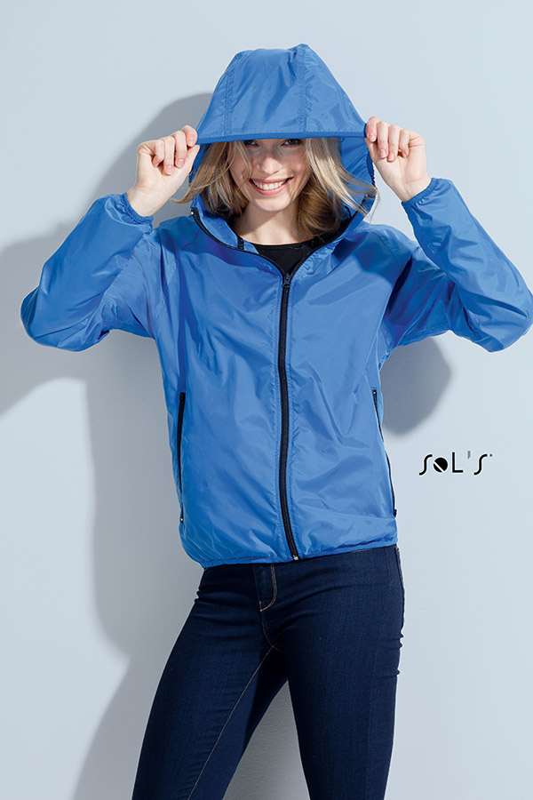 Jacheta personalizata unisex impermeabila si antivant. Se inchide cu fermoar contrastant pe toata lungimea. Prevazuta cu doua buzunare laterale care se inchid cu fermoar contrastant. Model cu maneci raglan si mansete elastice. Marginea de jos si cea din jurul glugii sunt prevazuta cu banda elastica. Produsul se poate impacheta in interiorul buzunarului. Confectionata 100% din nailon impermeabil, 210T. Jacheta se poate personaliza prin serigrafie sau broderie. Costurile serviciului de personalizare se calculeaza separat in functie de siglele si textele dorite.Culori disponibile: Negru, Rosu, Bleumarin, Albastru, Verde. Marimi disponibile: XS, S, M, L, XL, XXL. Comanda minima 50 buc. Pretul nu contine TVA.