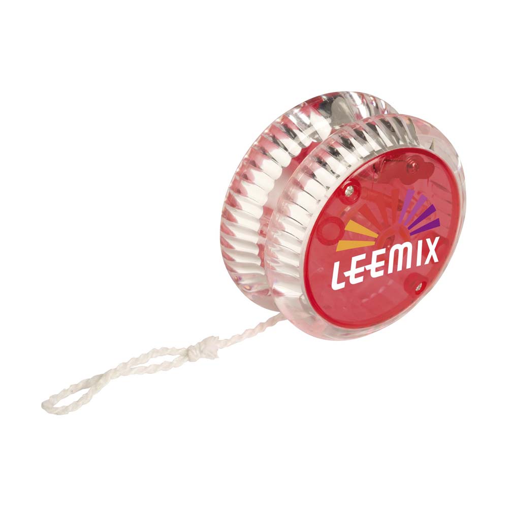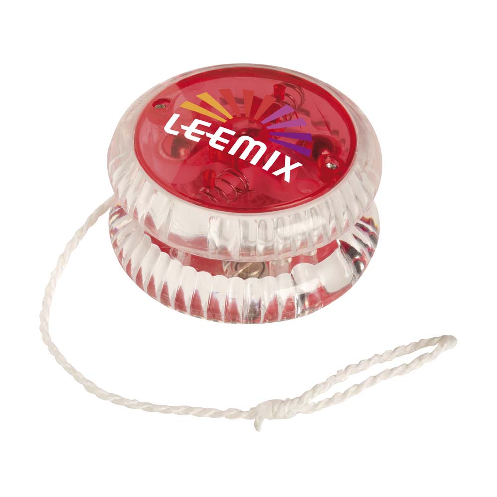 Jucarie yoyo confectionata din plastic transparent colorat prevazuta la interior cu lumina de culoare rosie care se aprinde in momentul manevrarii jucariei. Este un produs modern foarte indragit de copii care le va atrage cu siguranta atentia datorita luminii incorporate cu care este prevazut. Este o jucarie personalizata foarte indragita de copii care poate deveni un obiect promotional de succes in campania de promovare a companiei sau produsului tau. Se livreaza cu baterii incluse in pret. Culori: rosu, albastru. Dimensiuni: diametru 5.6 x 3.5 cm. Va recomandam personalizare jucarie prin tampografie. Costurile de personalizare se calculeaza separat in functie de detaliile tehnice ale proiectului dvs. Comanda minima 100 buc.