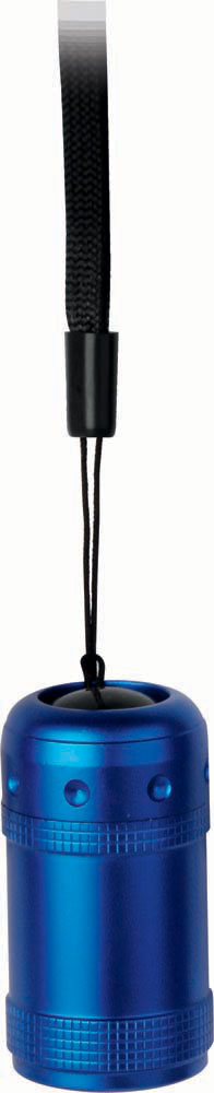 Mini lanterna persoalizata metalica prevazuta cu curea pentru agatare sau pentru incheietura mainii. Prezinta sase becuri LED, este confectionata din aluminiu si se livreaza cu baterii incluse in pret. Culori: rosu, negru, albastru, gri. Dimensiuni: diametru 2.8 x 5 cm. Pentru acest produs va recomandam personalizarea prin tampografie sau serigrafie. Costurile pentru personalizare nu sunt incluse in pretul afisat. Acestea sunt calculate separat in functie de specificatiile proiectului pe care doriti sa il realizati. Comanda minima 50 buc.