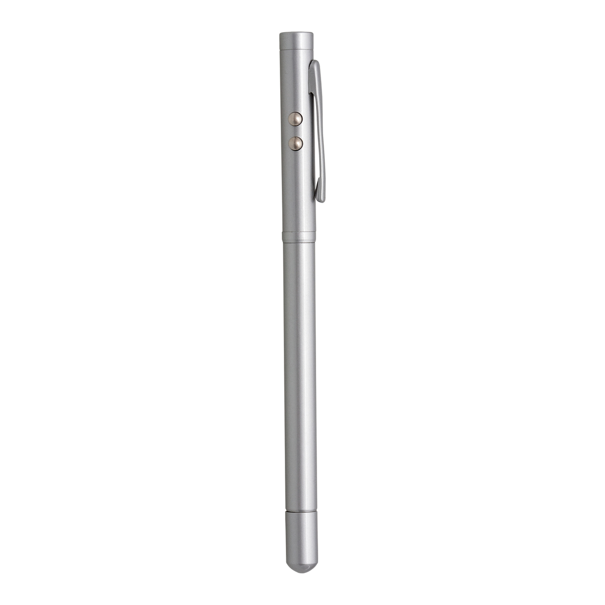 Laser pointer personalizat multifunctional prevazut cu: indicator extensibil pentru prezentari (40 cm), laser cu lumina LED alba, pix cu pasta de culoare neagra. Produsul este disponibil cu finisaj lucios sua mat, se livreaza cu baterii incluse in pret si ambalat in cutie cadou. Dimensiuni: 146 x 9 x 9 mm. Va recomandam personalizare laser pointer prin serigrafie sau gravura. Costurile de personalizare se calculeaza separat in functie de siglele/textele dorite. Cantitate minima 50 buc. Pretul nu contine TVA.