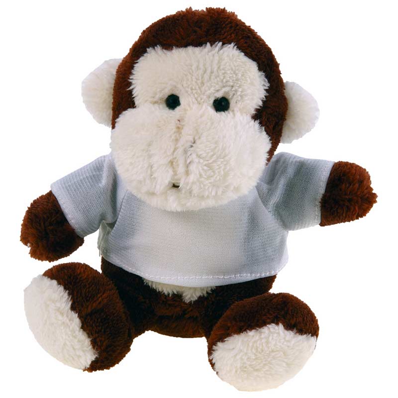 Maimuta de plus personalizata, confectionata din material moale si placut la atingere. Este prevazuta cu un tricou de culoare alba care poate fi personalizat in functie de nevoile dvs. Este un obiect promotional ideal pentru campaniile dedicate copiilor, pentru tombole cu premii sau evenimente pentru copii. Tricoul se livreaza ambalat separat. Produs confectionat din plus si poliester. Dimensiuni: 16 cm. Va recomandam personalizare jucarie plus prin serigrafie transferata. Costurile de personalizare se calculeaza separat in functie de siglele sau textele solicitate. Comanda minima 50 buc.