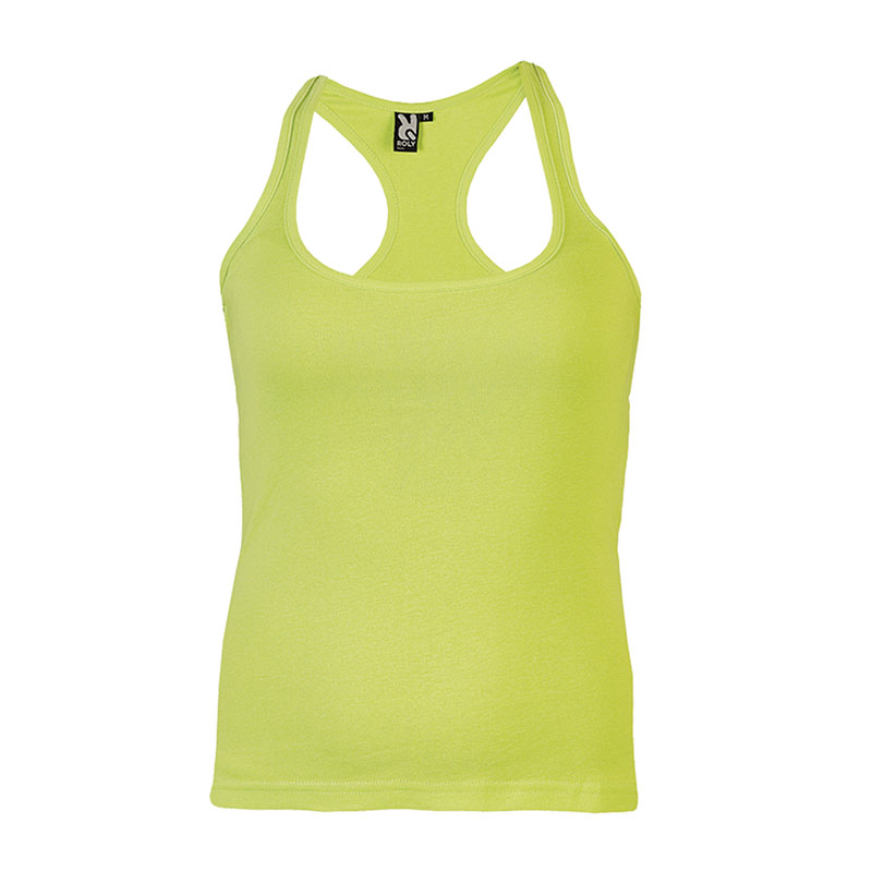 Maiou personalizat cambrat de dama. Croiala cu cusaturi laterale si tip innotator. Produs prevazut cu garnitura lata si rasucita in zona decolteului si la rascroiala manecii. Confectionat 100% din bumbac, canal�� 1×1, (220 g/m2). Eticheta produsului este detasabila. Se recomanda imprimarea tricoului prin serigrafie transferata sau broderie. Costurile de personalizare se calculeaza separat, in functie de detaliile de personalizare dorite.Culori disponibile: Negru, Alb, Roz, Roz intens, Trandafiriu inchis, Verde lime, Verde, Bleu deschis, Turcoaz, Portocaliu, Rosu. Marimi disponibile: S, M, L, XL, XXL. Comanda minima 50 buc. Pretul nu contine TVA.