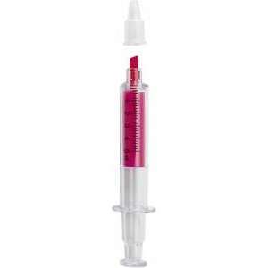 Marker evidentiator cu design in forma de seringa. Produs confectionat din plastic. Culori: galben, verde, roz. Dimensiuni: diametru 1.6 x 13.7 cm. Se recomanda personalizarea produsului prin tampografie. Costurile de personalizare se calculeaza separat in functie de specificatiile proiectului dvs. Comanda minima 100 buc. Pretul nu contine TVA.
