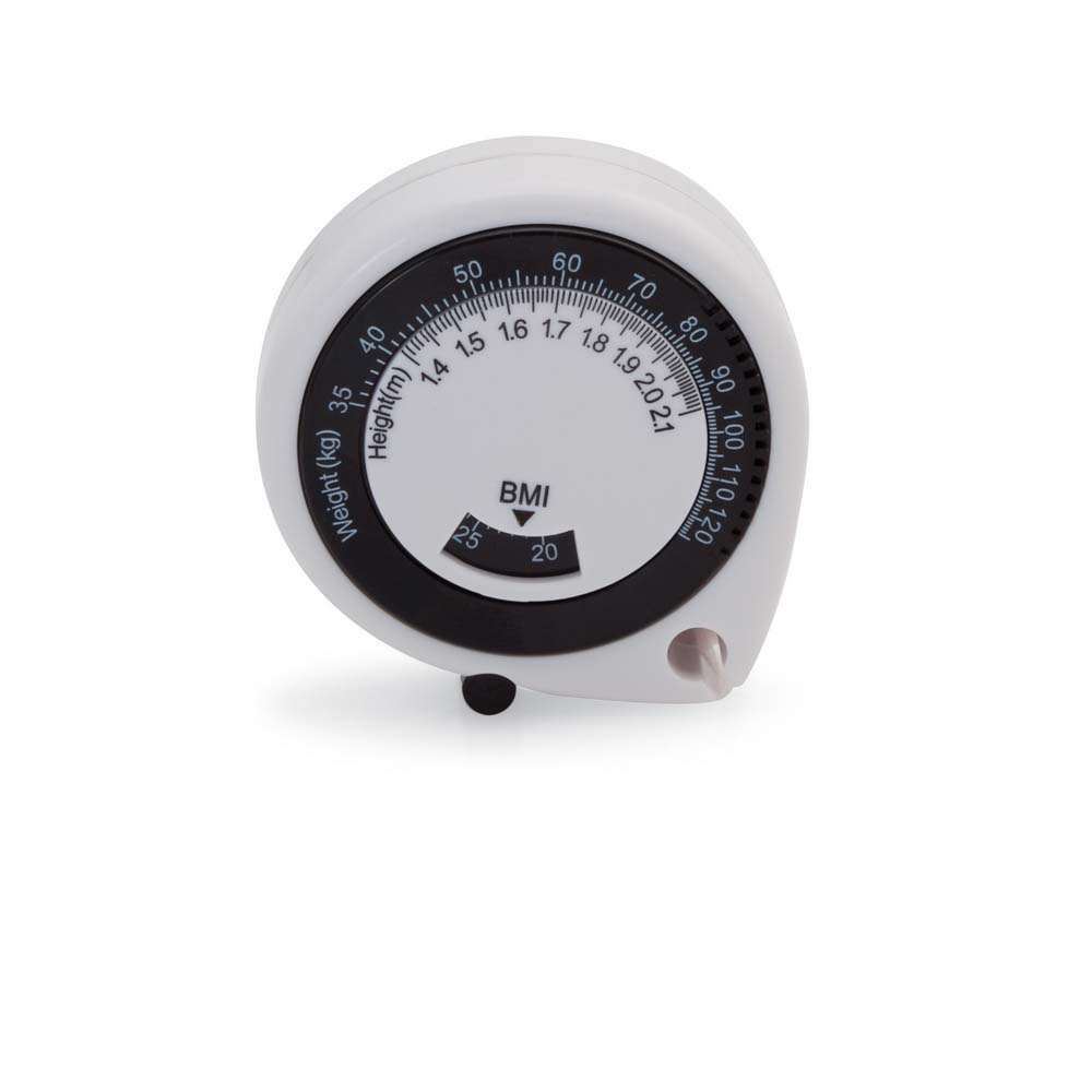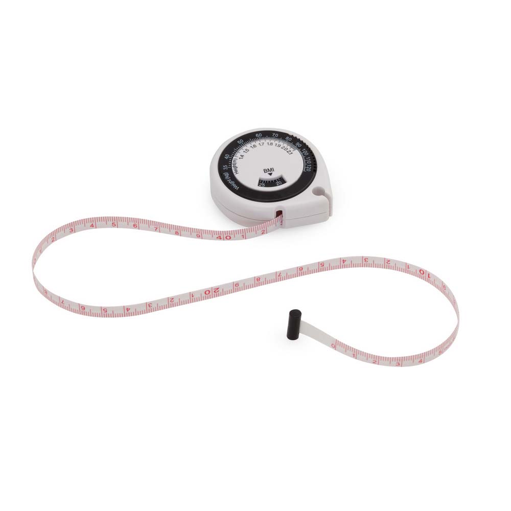 Metru prevazut cu indicator pentru masa corporala. Banda de masurare are o lungime de 150cm. Produs confectionat din plastic. Dimensiuni: 5.5 x 6.3 x 2 cm. Va recomandam personalizarea prin serigrafie sau print UV. Costurile de personalizare se calculeaza separat in functie de specificatiile proiectului dvs. Comanda minima 100 buc.