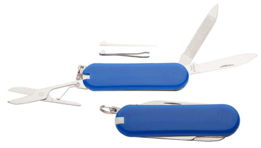Briceag personalizat multifunctional confectionat din otel inoxidabil si prevazut cu 6 functii. Design de dimensiuni mici prevazut cu agatatoare. Culori: rosu, albastru, negru. Dimensiuni: 5.8 x 1.8 x 0.9 cm. Va recomandam personalizarea acestui produs prin tampografie sau gravura. Costurile de personalizare se calculeaza separat in functie de solicitarile clientului. Comanda minima 100 buc.