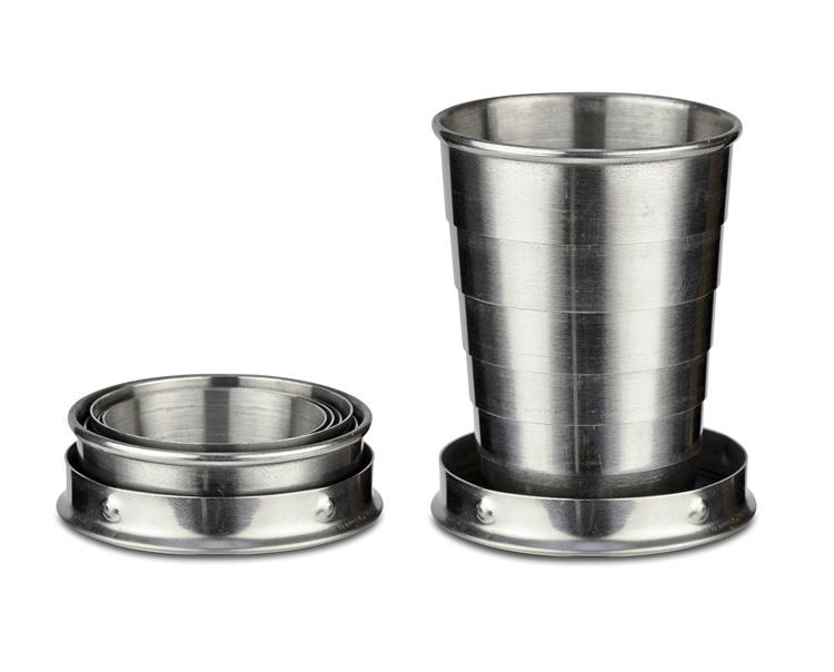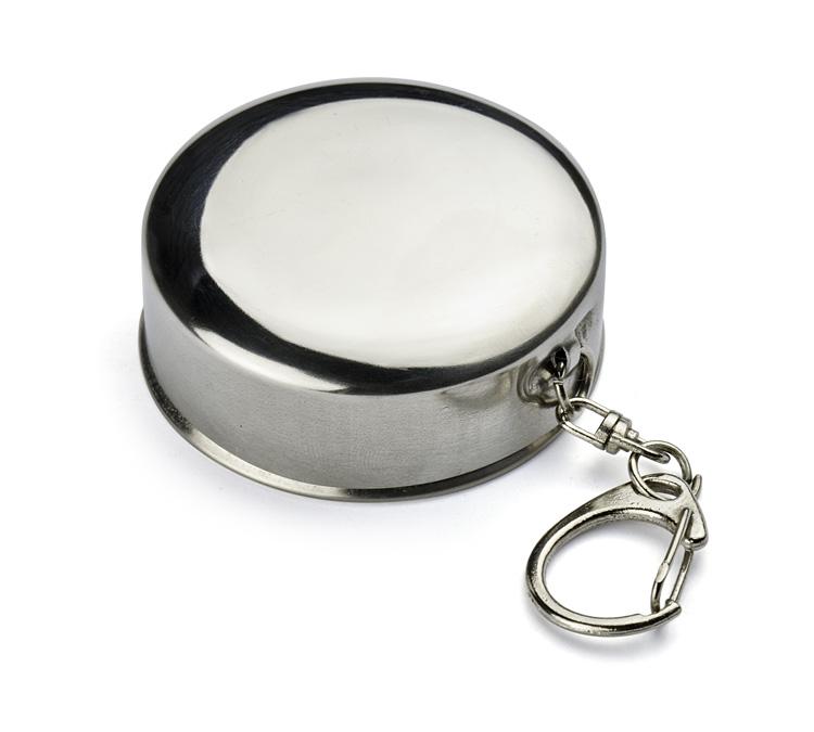 Pahar pliabil personalizat confectionat din otel inoxidabil. Are o capacitate de 65 ml si se depoziteaza intr-o cutie metalica prevazuta cu inel pentru chei. Dimensiuni: diametru 50 x 20 mm. Va recomandam personalizarea prin tampografie metal sau gravura. Costurile serviciului de personalizare se calculeaza separat in functie de specificatiile proiectului dvs. Comanda minima 50 buc. Pretul nu contine TVA.
