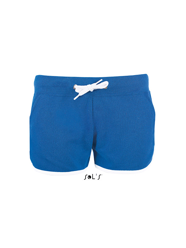Pantaloni personalizati scurti de dama. Model potrivit pentru activitatile sportive dar si pentru cele recreative. Talia este elastica si este prevazuta cu un snur pentru reglare de culoare alba. Prezinta doua buzunare laterale. Marginea inferioara si partea laterala sunt decorate cu o banda de material de culoare alba. Confectionati din 80% bumbac si 20% poliester, French Terry (240 g/m2). Pentru personalizarea pantalonilor recomandam broderia sau serigrafia transferata. Costurile de personalizare se calculeaza separat in functie de siglele si textele dorite.Culori disponibile: Negru, Gri, Alb, Bleumarin, Albastru. Marimi disponibile: XS, S, M, L, XL. Comanda minima 50 buc. Pretul nu contine TVA.