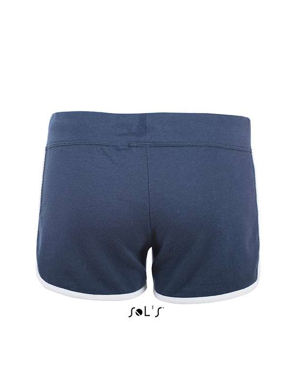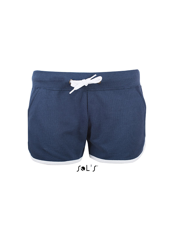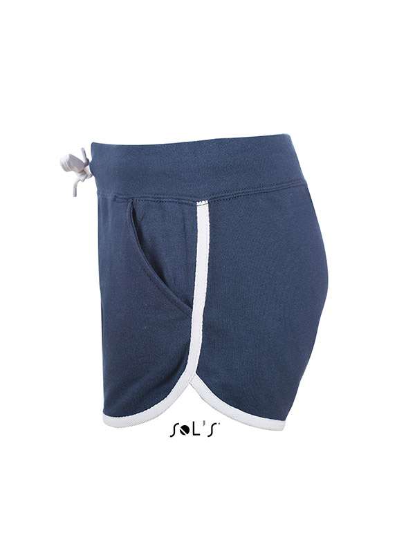 Pantaloni personalizati scurti de dama. Model potrivit pentru activitatile sportive dar si pentru cele recreative. Talia este elastica si este prevazuta cu un snur pentru reglare de culoare alba. Prezinta doua buzunare laterale. Marginea inferioara si partea laterala sunt decorate cu o banda de material de culoare alba. Confectionati din 80% bumbac si 20% poliester, French Terry (240 g/m2). Pentru personalizarea pantalonilor recomandam broderia sau serigrafia transferata. Costurile de personalizare se calculeaza separat in functie de siglele si textele dorite.Culori disponibile: Negru, Gri, Alb, Bleumarin, Albastru. Marimi disponibile: XS, S, M, L, XL. Comanda minima 50 buc. Pretul nu contine TVA.