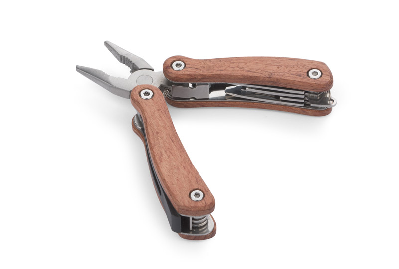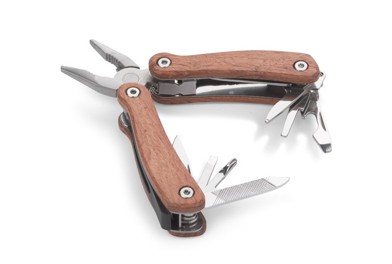 Patent multifunctional cu manerul din lemn. Functii: cutit, cutter, fierastrau, surubelnita, desfactaor sticle si conserve. Vine prevazut si cu un pouch negru. Culori disponibile: negru. Pretul afisat nu include costurile de personalizare. Acestea se calculeaza la cerere in functie de specificatiile proiectului dvs. Comanda minima: 50 buc. Pretul nu include TVA
