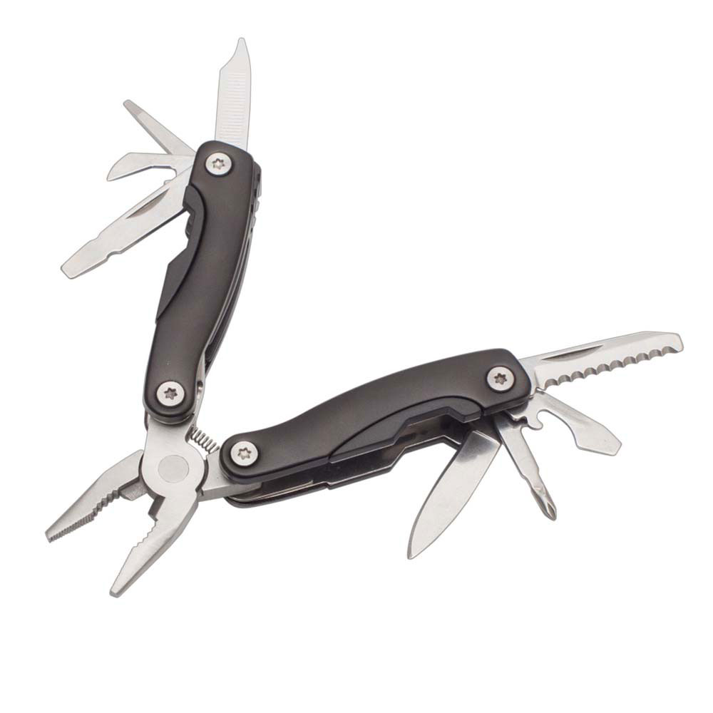Patent pliabil multifunctional. Este prevazut cu mai multe accesorii printre care: cutit, surubelnita stea, desfacator sticle, surubelnita dreapta (2 dimensiuni), lama zimtata, pila, desfacator conserve si dispozitiv pentru taiat cabluri. Produs confectionat din otel si aluminiu. Se livreaza cu husa de protectie din poliester cu inchidere cu scai. Culori: albastru, begru. Dimensiuni: 6.9 x 3.2 x 1.8 cm. Va recomandam personalizarea prin serigrafie directa. Costurile de personalizare se calculeaza separat in functie de specificatiile si detaliile tehnice ale proiectului care se doreste sa se realizeze. Comanda minima 50 buc.
