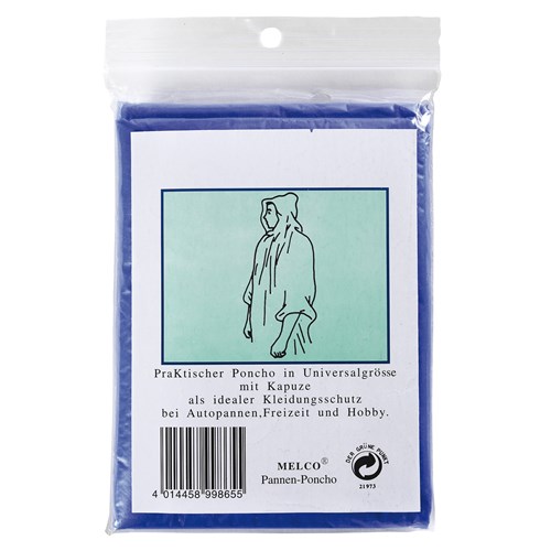 Pelerina de unica folosinta cu gluga – pentru proiectia impotriva ploii. Produs confectionat din plastic. Culori: albastru, transparent. Dimensiuni: 130 x 124 cm. Marime universala. Pentru personalizare pelerina va recomandam aplicarea unui sticker pe ambalajul acesteia. Costurile de personalizare se calculeaza separat in functie de specificatiile proiectului dvs. Comanda minima 100 buc. Pretul nu contine TVA.