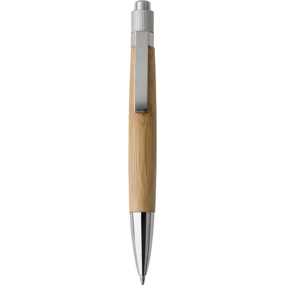 Pix lemn personalizat cu corp confectionat din bambus. Este un produs deosebit datorita combinatiei dintre lemn si componentele argintii. Acest pix lemn personalizat poate reprezenta o optiune demna de luat in calcul pentru utilizarea in cadrul evenimentelor tematice sau ca produs promotional in campania de marketing pentru produsele si serviciile tale. Pixul este prevazut cu clips metalic, mecanism de actionare prin apasare si pasta de culoare albastra. Produs confectionat din lemn de bambus, plastic si metal. Dimensiuni: diametru 1.5 x 13.5 cm. Va recomandam personalizare pix lemn prin tampografie, serigrafie, gravura sau print UV. Costurile de personalizare se calculeaza separat in functie de siglele sau textele solicitate. Comanda minima 100 buc.