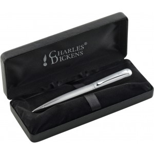 Pix metalic personalizat argintiu marca Charles Dickens. Pasta este de culoare neagra iar mecanismul de inchidere/deschidere este prin rasucire. Se livreaza ambalat in cutie cadou de culoare neagra. Dimensiuni: 7.2 x 17.1 x 3.3 cm. Va recomandam personalizarea produsului prin tampografie sau gravura laser. Costurile de personalizare se calculeaza separat in functie de specificatiile si detaliile clientului. Comanda minima 50 buc. Pretul nu contine TVA.