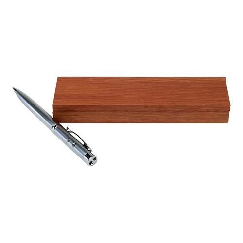 Pix metalic personalizat cu Laser pointer personalizat si LED cu lumina alba. Produsul se livreaza cu baterii si ambalat in cutie eleganta din lemn. Dimensiuni: 13,2 x diametru 1 cm. Pentru personalizarea produsului recomandam gravura laser sau tampografia. Costurile de personalizare se calculeaza separat in functie de siglele si textele dorite. Comanda minima 50 buc. Pretul nu contine TVA.