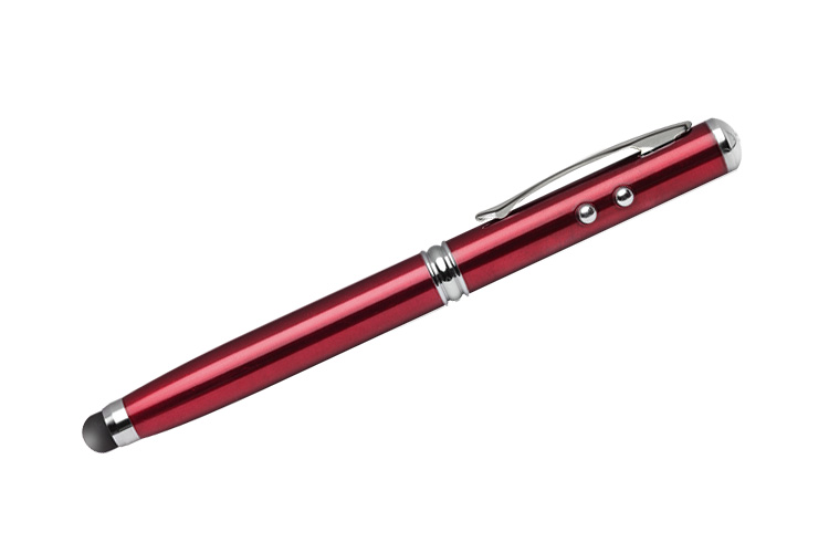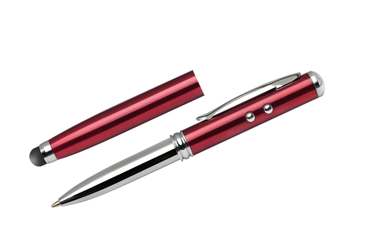 Pix metalic imprimat multifunctional cu capac. Acest pix indeplineste patru functii: instrument de scris, touch pen, indicator laser si lanterna. Capacul pixului este prevazut cu un cauciuc special creat pentru actionarea gadget-urilor cu touch screen care va va fi foarte util deoarece nu zgaraie suprafata, nu lasa amprente/urme, este foarte precis si poate fi utilizat in orice situatie (ex: conditii meteo nefavorabile). Pentru utilizarea ca lanterna sau indicator laser, produsul prezinta doua butoane special create pentru activarea acestor functii. Pasta pixului este de culoare albastra. Culori: Alb, Negru, Albastru, Rosu. Dimensiuni: 124 x 10 mm. Produsul se poate personaliza prin tampografie metal, gravura sau print UV. Costul personalizarii se calculeaza in functie de specificatiile clientului. Comanda minima 50 buc. Pretul nu contine TVA.
