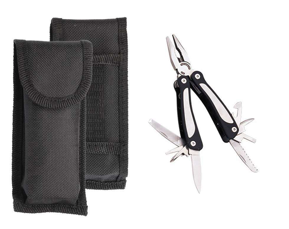 Unealta multifunctionala din otel inoxidabil. Indeplineste cu succes 9 functii: cleste, pila, 3 surubelnite, 2 cutite diferite, deschizator conserva si miniferastrau. Se livreaza in husa din poliester de culoare neagra. Dimensiuni: 70 x 141 x 40 mm.Pentru personalizare va recomandam serigrafia directa. Costurile de personalizare se calculeaza separat in functie de specificatiile proiectului dvs.Cantitate minima 50 buc. Pretul nu contine TVA.